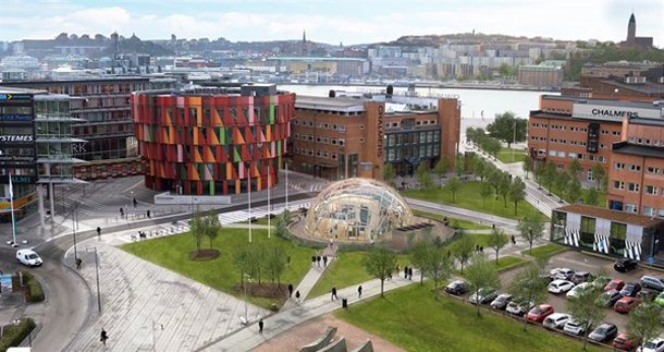 NCC:s Dome of Visions byggs nu upp i Göteborg på Lindholmen vid Chalmers Tekniska Högskola med invigning i juni. I samarbete med Chalmers, AB Volvo och Lindholmen Science Park öppnas denna kupolformade byggnad för samtal och dialog om framtidens hållbara samhälle mellan politik, näringsliv, akademi, kultur och allmänhet.
