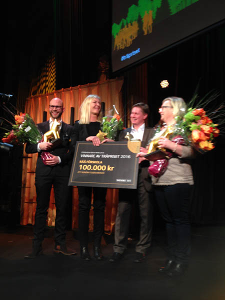 Nu är det klart. Råå förskola i Helsingborg vann Träpriset 2016, ett av Sveriges mest kända arkitekturpris som tilldelas en byggnad som representerar god svensk arkitektur i trä och som speglar och utvecklar tiden vi lever i. Pristagaren ärades under onsdagskvällen med den gyllene hästen och prissumman på 100000 kronor. Vi var självklart på plats!