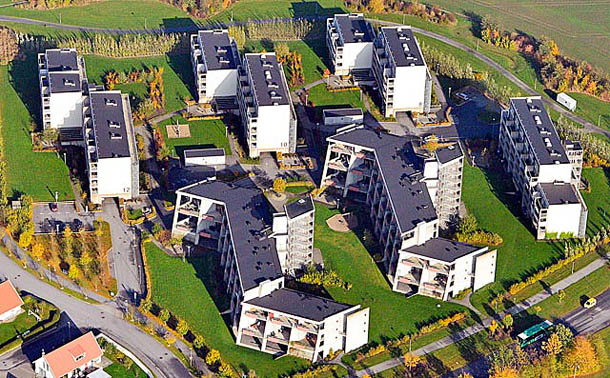 Det högsta huset är 20 våningar och det lägsta 6 våningar. En beräkning visar att om man byter ut 6000 träbostäder mot lika många betongbostäder sparas 600000 ton koldioxid, vilket innebär lika mycket koldioxid som att pausa all flygtrafik på Bromma flygplats i 50 år!