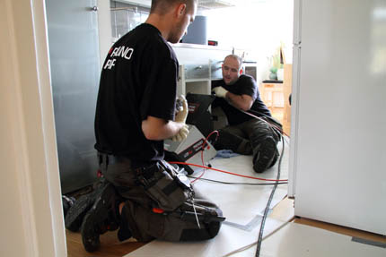 På sex veckor skall jobbet vara gjort, oavsett hur gammal fastigheten är. Blir en stam försenad skjuts hela arbetet. Gamla gjutjärnsrör byts ut mot nya ljudisolerade plaströr. Gammalt porslin slängs ut och badrummen fuktskyddas efter dagens normer.