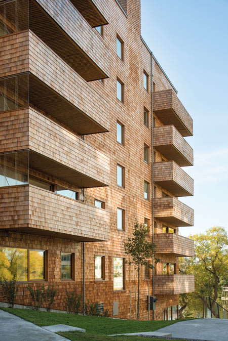 Genom Höga hus-projektet vill Martinsons ta fram en ny byggnorm som är anpassad till träets unika förutsättningar. Idag är det svårt att bygga trähus högre än åtta till tio våningar eftersom den svenska byggnormen för höga hus inte går att applicera på trähus när det gäller dimensionering av svängningar.