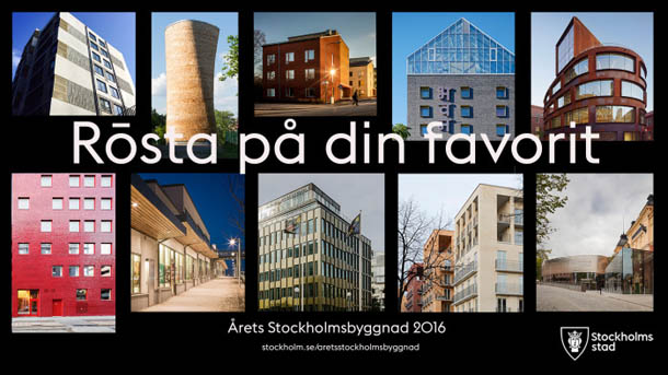 Juryn har utsett de tio finalisterna. Nu börjar omröstningen där alla får vara med och utse Årets Stockholmsbyggnad 2016. – I år har vi ett varierat startfält som visar att det byggs både kvalitativt och innovativt i Stockholm, säger juryordförande och stadsbyggnadsborgarråd Roger Mogert (S).