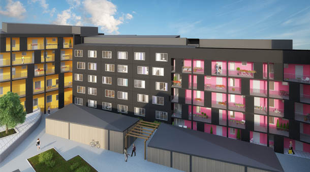 Stadsbyggnadsborgarrådet Regina Kevius (M) invigde en solig majförmiddag den första etappen av nya Campus Björksätra i Bredäng med 36 nya studentlägenheter. Studentlägenheterna är byggda av prefabricerade, nyutvecklade kerambetongmoduler från Soleed AB i Eksjö och stor vikt har lagts vid design och arkitektur.