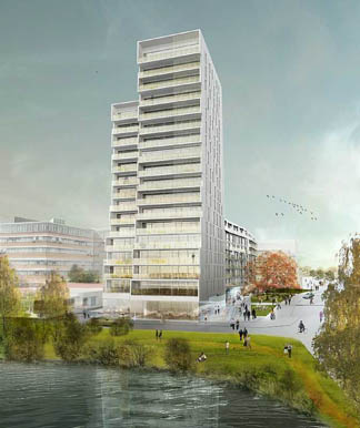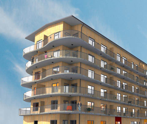 – På fantastiska Öster Mälarstrand bygger vi trähus i sex våningar, säger Mimers VD Anders Nordstrand. Det går snabbt och är bra för miljön i Västerås. Dessutom ökar vi konkurrensen och spänner bågen för ny, spännande träarkitektur.