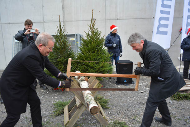 Den 11 december togs det första sågtaget taget för Västerås högsta trähus - Kvarteret Mesanseglet. Fastighet & Bostadsrätt var förstås på plats!