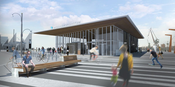 Nu startar Västtrafik bygget av Stenpiren Resecentrum vid Skeppsbron i Göteborg. Resecentrumet är en del i den nya stadsutvecklingen vid Södra Älvstranden. Byggnaden beräknas stå färdig i början av nästa år och blir en viktig bytespunkt mellan spårvagn, buss och båt.